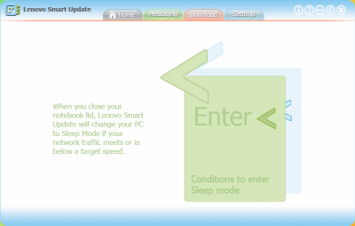 Predstavuje software, ktorý je schopný počas režimu spánku, prípadne hybernácie, aktualizovať informácie z chatu, emailu…, aby ste neustále mali k dispozícií najnovšie informácie. Po zobudení notebooku vám Lenovo Smart Update zobrazí obsah aktualizovaných informácií v štýlovo vyzerajúcom okienku, viď nižšie.