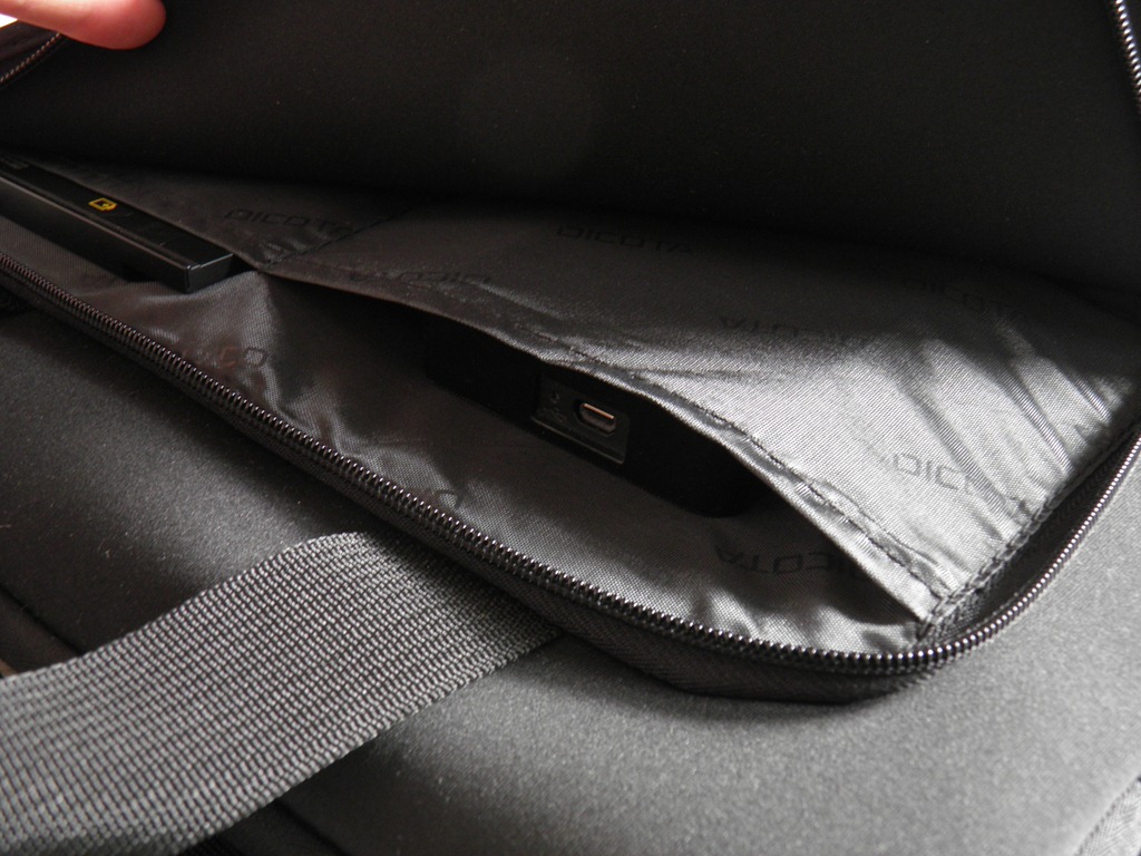 Taška působí díky celočernému provedení, ladným tvarům, tenkému profilu, čistým zakončením švů a oproti svému předchůdci černým a tmavě kovovým detailům včetně loga Dicota velice univerzálně, elegantně a usedle. Jsem si jistý, že neudělá ostudu ani u obleku.