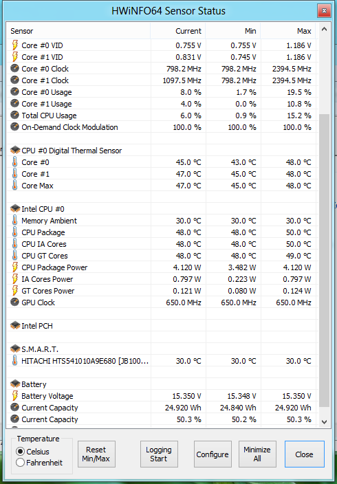 Pri týchto testoch sa notebook nijak výrazne nezahrieval a chladenie aj bez nastavenia Tepelného managementu (absencia ovládačov pre Z500) bolo krásne tiché. Za bežnej činnosti dosiahli teploty hodnotu max. 29° HDD a 46° procesor. Pri vyššej záťaži tieto teploty dosahovali okolo 30° HDD a procesor 64°. Test maximálnej záťaže nebolo možné vykonať z vyššie uvedených dôvodov.