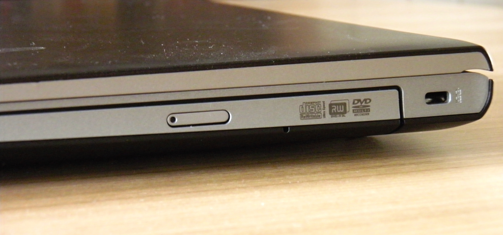 Kensington lock, DVD mechanika, 2 x USB 2.0, Vstup/Výstup pre slúchadlá