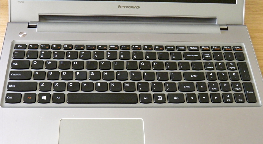 Klávesnica je 6-radová chiclet s ergonomicky tvarovanými klávesmi a samostatným numerickým blokom, ktorá je rozložením totožná s klávesnicou U410/U310. Ide teda o nový pohľad na generáciu rady Z. Písanie na klávesnici je veľmi príjemné, klávesy reagujú pohotovo a rozloženie je pohodlné s dostatočnými medzerami medzi klávesmi pre ešte príjemnejší zážitok z písania. Vzhľadom k nástupu nových Windows 8 je aj klávesnica Z500 prispôsobená práve tomuto novému operačnému systému, a tak môžete nájsť pár kláves dedikovaných priamo pre tento systém. Novinkou je dióda na NumLocku, podobná ako u U310/U410 na CapsLku.