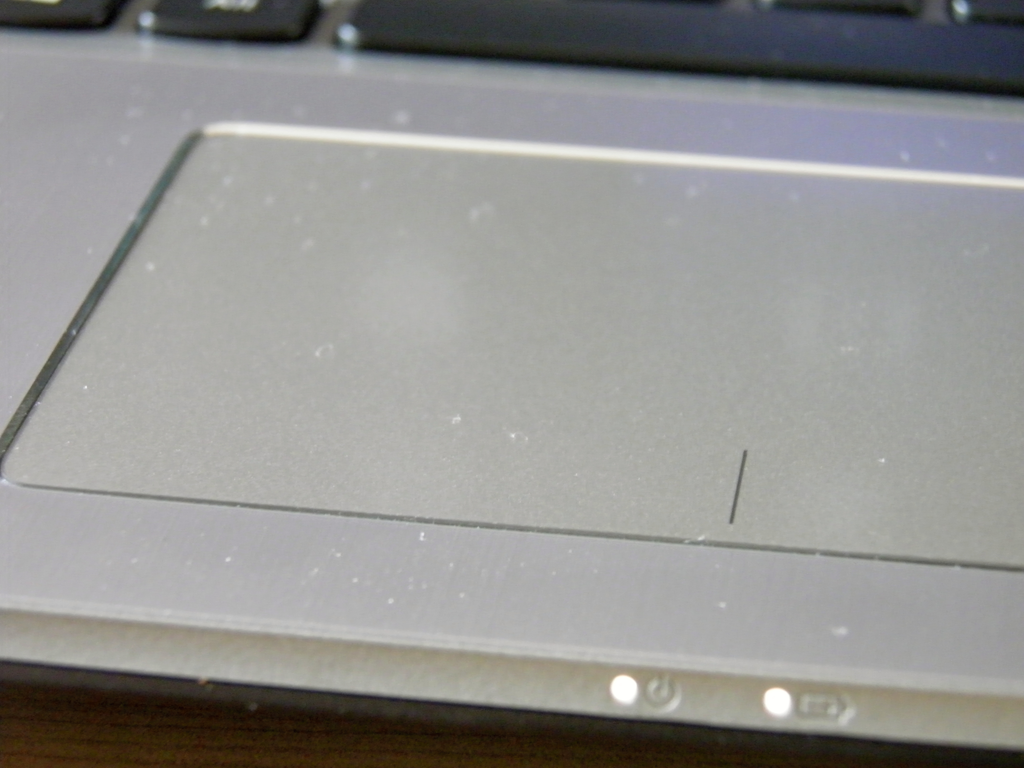 Touchpad je v prevedení clickpad, presnejšie ide o inteligentný clickpad, ktorý reaguje veľmi pohotovo a práca s ním je vďaka jemnému povrchu a dostatočnej veľkosti príjemná a pohodlná. Pravé aj ľavé tlačidlo reagujú bez problémov na celej svojej ploche bez oneskorenia. Vzhľadovo opäť pripomína viac clickpady U410/U310. Na slnku je možné vidieť jemné trblietky, ktorá na metalickom/šedom povrchu vyzerajú veľmi pekne až mysticky.