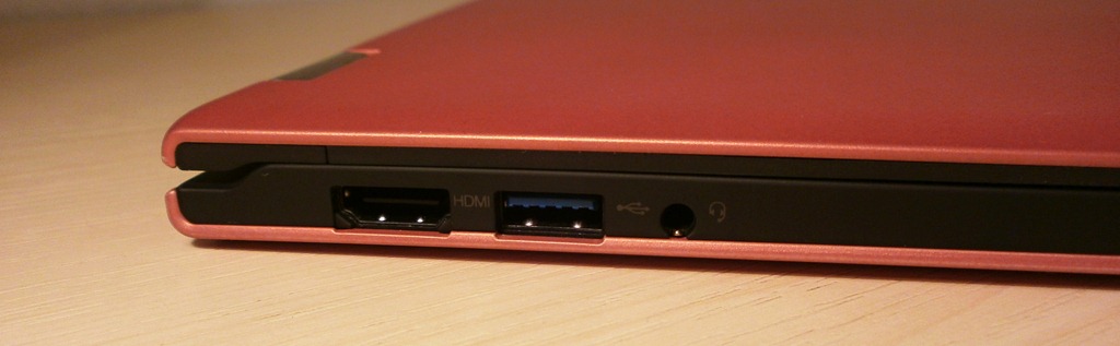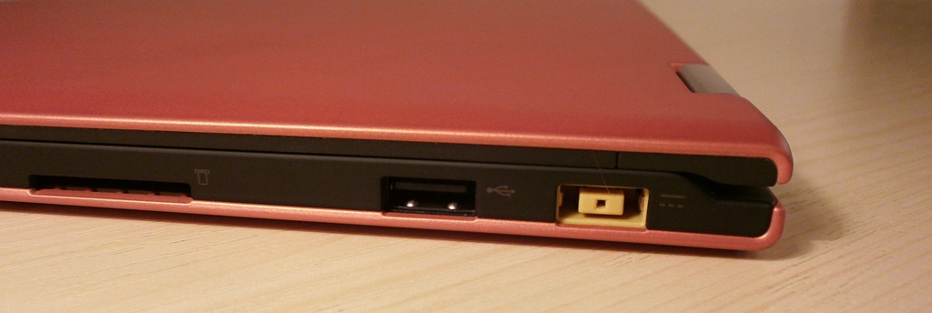 Tlačidlo zapnutia/vypnutia automatického otáčania displeja, Čítačka kariet 2v1, USB 2.0, Napájací konektor (USB podobne ako sme mohli vidieť u X1 Carbon)