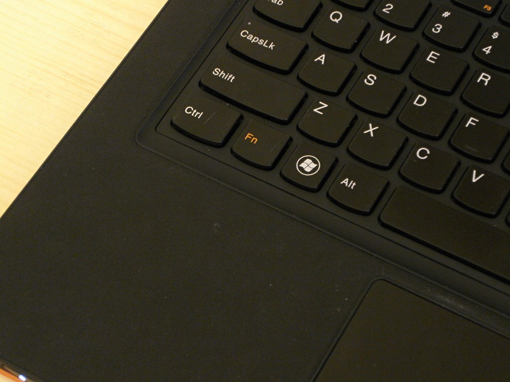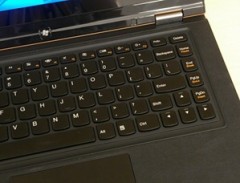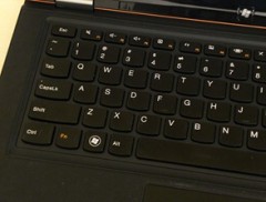 Klávesnica je 6-radová chiclet s ergonomicky tvarovanými klávesmi, nízkou hĺbkou stlačenia a príjemným rozložením kláves s popisom zatiaľ neprispôsobeným pre nový operačným systém Windows 8 (aspoň čo sa týka predprodukčného kusu). Písanie je na tejto klávesnici nesmierne príjemné a pohodlné, v porovnaní so zvyšnými zástupcami rady IdeaPad je pre mňa zatiaľ tou najlepšou. Čo sa týka hlučnosti, ide o tichú klávesnicu, opäť asi najtichšiu z rady IdeaPad. Na testovanie sme mali k dispozícií anglickú verziu.