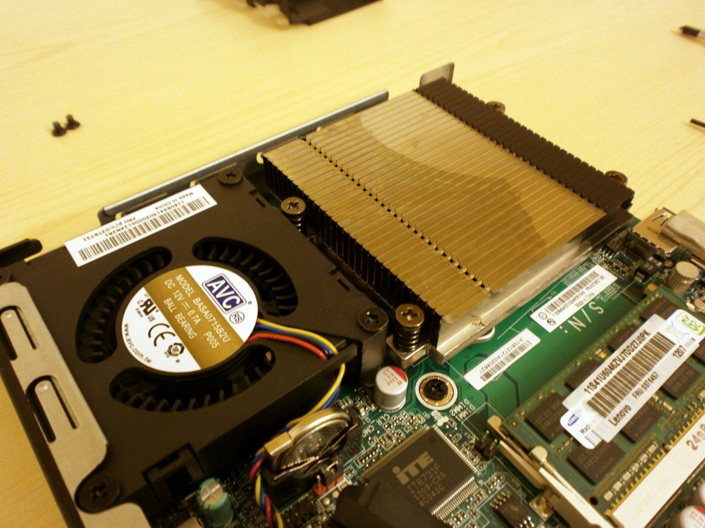 Jak vypadá miniaturní počítač, jako je ThinkCentre Tiny, uvnitř? Pro každého, kdo se běžně nesetkává s miniaturními HTPC či různými Mini ITX řešeními, může být pohled “pod pokličku” poměrně zajímavý, možná ho dokonce překvapí naprostá jednoduchost, ale zároveň prostorová efektivita (vzpomněl jsem si hned na nejmenší dvouprocesorovou pracovní stanici ThinkStation C20) takového řešení.