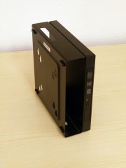 V úvodu jsem přirovnával ThinkCentre Tiny k IdeaCentre Q180, ovšem srovnat se samozřejmě nedají. Proč? Když pominu výkonnostní stránku, ke které se ještě dostaneme, a nepřešla by nás touha srovnávat ani poté, co jsme ThinkCentre viděli (působí samozřejmě mnohem profesionálněji), zcela jistě už změníme názor, jakmile vezmeme ThinkCentre Tiny do ruky – vzhledem k tomu, že celé šasi (jen s výjimkou překryvu čelního panelu) je vyrobené z kovu o stejné tuhosti jako v případě běžných desktopů ThinkCentre (tedy díky malým rozměrům získává ještě o to větší tuhost), je počítač na své rozměry poměrně těžký (v naší konfiguraci přes 1,3 kg), zato extrémně tuhý a pevný. S plastovým a lesklým IdeaCenterem Q180 tedy srovnání – kromě rozměrů – skutečně na místě není.