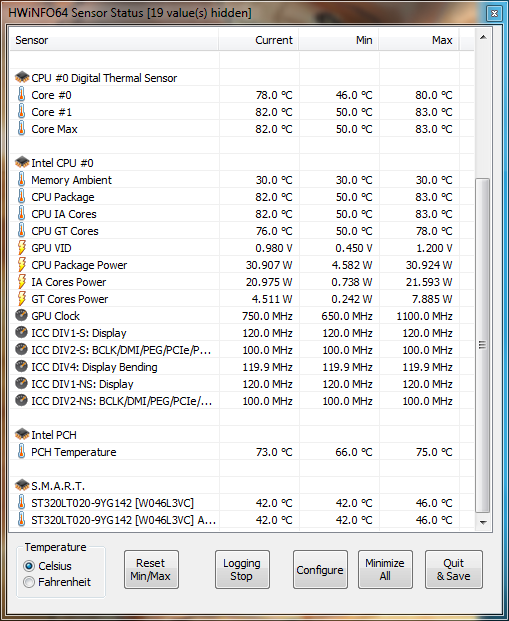 Co se teplot týče, ty jsou prakticky stejné jako u notebooků (není se čemu divit – parametry komponent tomu odpovídají a vnitřní prostor zhruba taky). V normální zátěži, při kancelářské práci či prohlížení webu se teplota procesoru drží do 50°C. Po dlouhé, půlhodinové zátěži teplota stoupla na špičkových 83°C bez throttlingu. Pevný disk kolísá mezi 40-46°C.