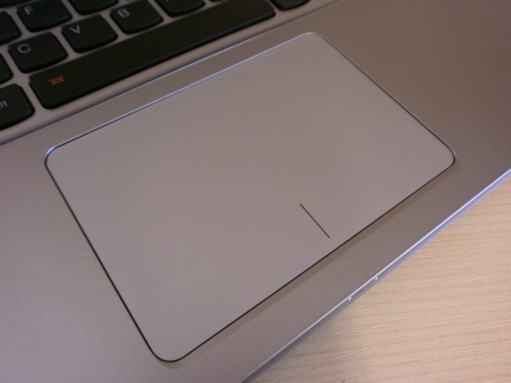 Inteligentný clickpad má jemný, matný povrch s plochým stlačením. Je umiestnený pod medzerníkom a jeho plocha je viac ako dostačujúca pre pohodlnú prácu. Hlučnosť je minimálna, sú počuteľné len pravé a ľavé tlačidlo, čo je pri clickpade normálne, zvyšok plochy je tichý. Jeho gestá sú prispôsobené novému operačnému systému Windows 8. Pracuje sa s ním naozaj krásne a pohodlne, veľmi oceňujem aj samotnú tichosť clickpadu, takmer nie je počuť, že s ním pracujete.