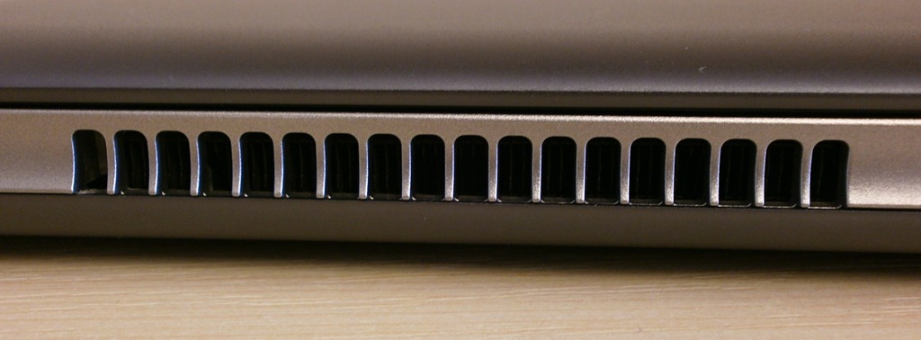 - Vývod chladenia – samozrejme najteplejšia časť notebooku pri zahrievaní, aj keď to nie sú extrémne teploty odporúčam vám nedotýkať sa priamo vývodov (to platí všeobecne pre všetky notebooky)