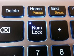 Je vybavená jednostupňovým* podsvietením, ktoré je efektívne pri práci s U510 v noci, prípadne za zníženej viditeľnosti. Indikačná dióda zapnutia/vypnutia, CapsLk a NumLock, svieti samostatne, pričom podsvietenie ju neprebíja ak je vypnutá (viditeľné na videu). Podsvietenie je biele, aj keď na fotkách má nádych do modra. Pri práci v noci mi veľmi spríjemnilo a zjednodušilo orientáciu na klávesnici.