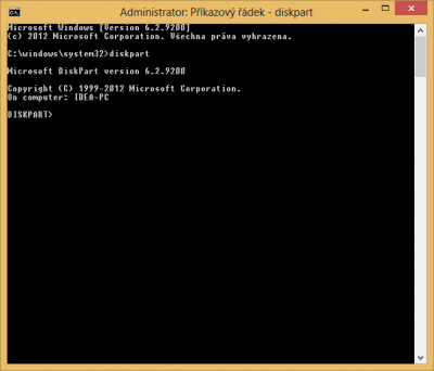 - Diskpart můžeme ukončit pomocí DISKPART> exit.