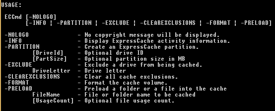 - partition – vytvoří oddíl pro ExpressCache (bez dalších možností jej vytvoří automaticky)