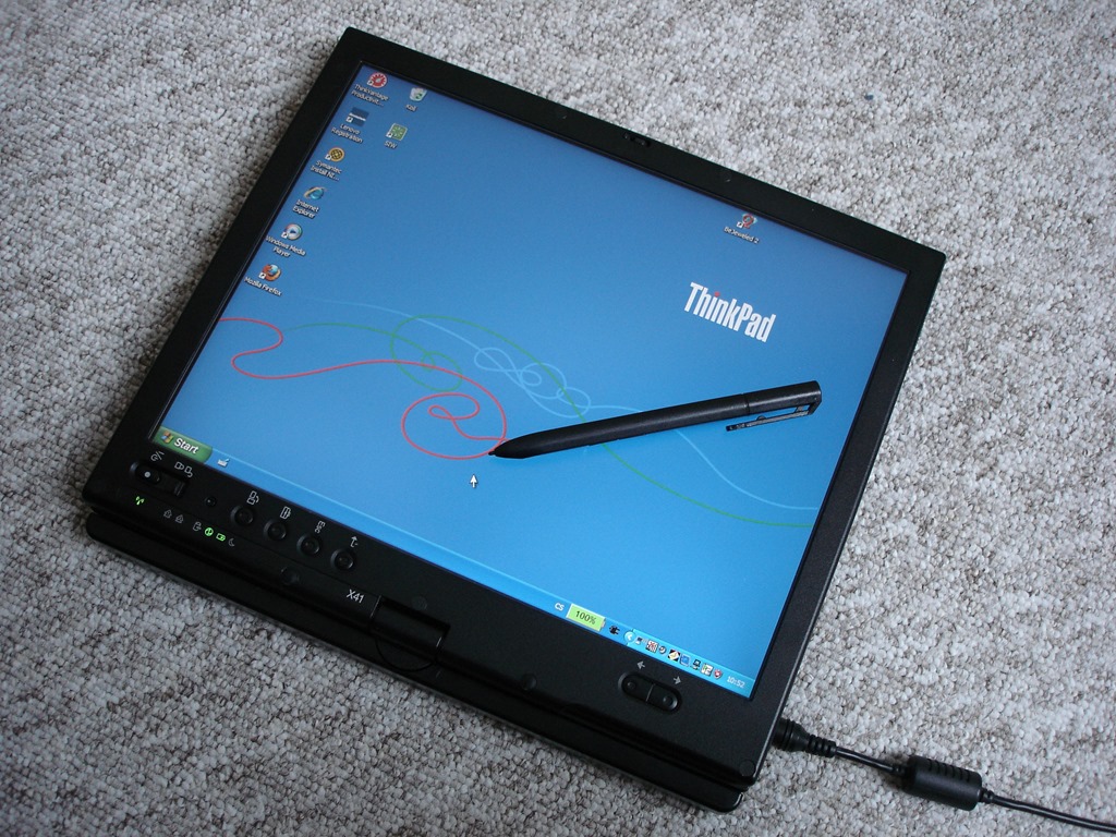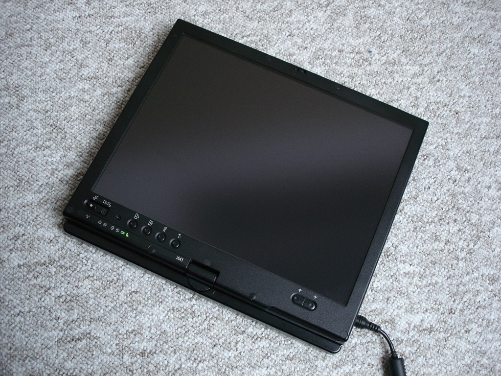 Displej 4:3 měl ještě nástupce X61t. Navíc byl možný s WWAN a Windows 7 si umí poradit i s českým škrabopisem. Jinak tablet je nepostradatelný pomocník venku při mé práci s GISem. Obrovskou nevýhodou obou modelů (X41t a X61t) je systém uzamykání displeje (lid / latch), kdy se při neopatrném zacházení tyto 2 části lámou.