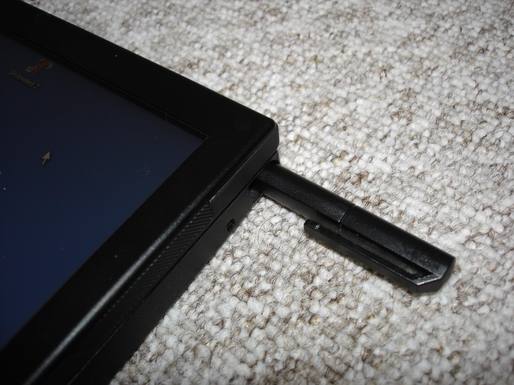 Základní věcí, na kterou dnes člověk v době kapacitních displejů není úplně zvyklý, je ovládání stylusem. Ten se ukrývá v levém dolním rohu základny a je jednoduše vycvaknutelný. Má černou barvu, poutko a dvojici doplňkových tlačítek. Nicméně jakkoliv mi svým způsobem připadá ovládání stylusem v dnešní době jako zajímavé retro, na plnohodnotné používání to není.