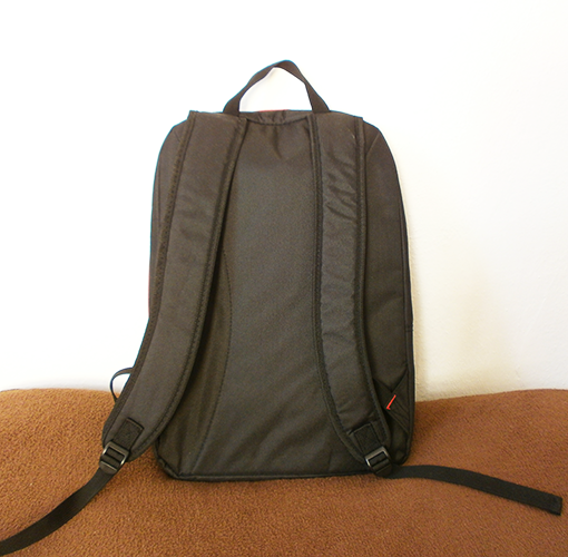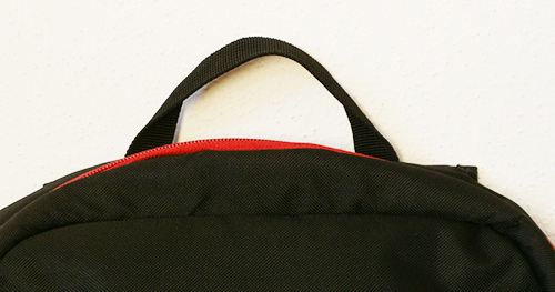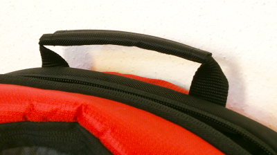 Rúčka batoha je jednoduchá a pre dlhé nosenie v ruke nepohodlná. Nejde o kľúčovú charakteristiku vzhľadom k tomu, že ide o batoh, nie brašnu. No určite by bolo lepšie ak by bola vystužená. Pre ochranu notebooku by bolo vhodné aj vystuženie spodnej časti.