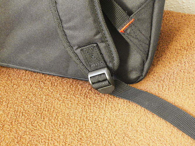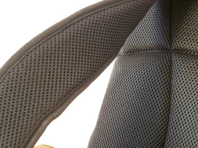 Celá zadná časť je polstrovaná pre zvýšenie pohodlia pri nosení pre váš chrbát, ale vystužená príliš nie je. Polstrovaná je aj rúčka a ramenné popruhy, ktoré sú nastaviteľné. Pre zvýšenie ochrany vášho notebooku je spodná strana polstrovaná z materiálu pripomínajúceho gumu alebo neoprén.