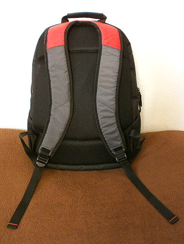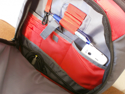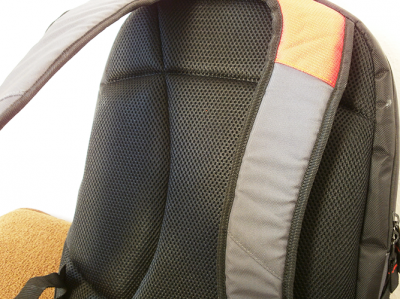 A posledná zadná kapsa je vyhradená pre notebook, nechýba kvalitné polstrovanie zo všetkých strán a jemný gumený popruh držiaci notebook. Popruh plní úlohu skôr tlmiča a jemného držiaka, neuchycuje notebook pevne. Vzhľadom k tomu, že celá táto kapsa je určená výhradne notebooku, nevidím v tom negatívum.