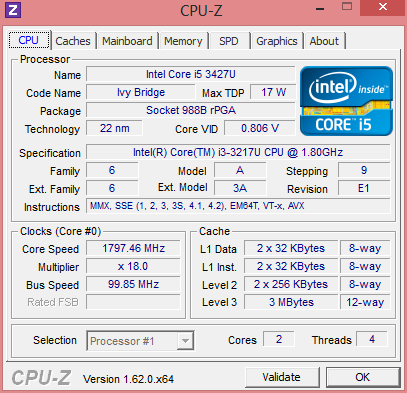 • Intel Core i3-3217U s frekvenciou 1,8GHz –      nízkonapäťový (ULV)