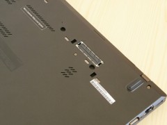 Zásadní ovšem je zmínit dokovací konektor (současné třetí generace) na spodní straně pro kompatibilitu s klasickými dokovacími stanicemi (Mini Dock). V krabici s notebookem ovšem najdeme také plastový nástavec, který zajistí, že se T431s správně v docku zarovná. Nástavec není třeba pouze kvůli jinému umístění konektoru, ale hlavně víku displeje, které se otevírá za základnu. Nástavec proto na sobě má gumový mezikus s pružinkou, aby se mohl pohybovat spolu s víkem.