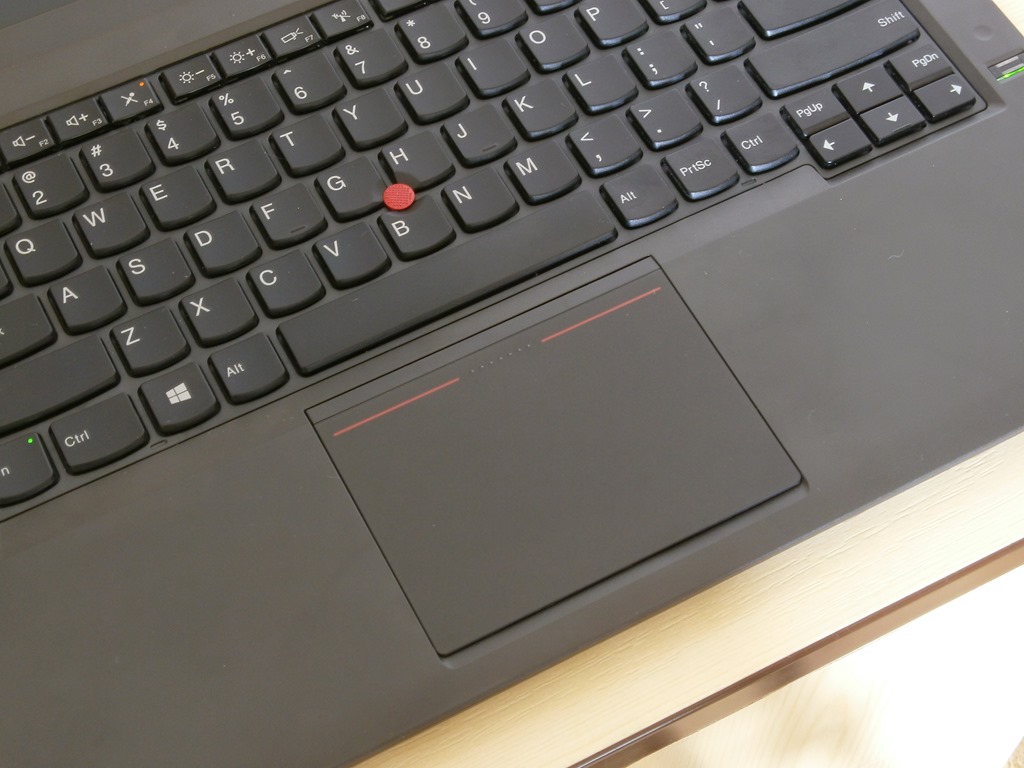 Nový “TrackPad”, čili jedna velká dotyková plocha s špičkovým skleněným povrchem, která do sebe integruje clickpad i tlačítka TrackPointu, je v T431s oproti ThinkPadu Helix větší (logicky – ve 14″ těle je více místa než v 11″ základně tabletu), ale nejenom to, má také jemnější a jednolitější stisk, ačkoliv mechanizmus pod dotykovou plochou trochu řinčí jako velké klávesy (což je alespoň důkaz, že Lenovo skutečně použilo svůj mechanizmus z klávesnic), což člověka upřímně na první dotyk trochu odradí. Po nějaké době vám to ale ani nepřijde.