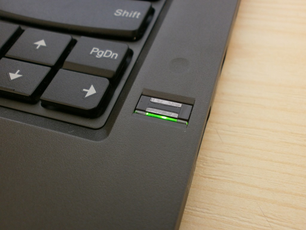 Nový design přinesl také změnu diodových indikátorů, spolu s ní také otočení log na víku displeje, ale postupně: diodové indikátory (napájení, pevný disk, bezdrátová připojení) prakticky vymizely, zůstala pouze jedna zdvojená dioda, která indikuje de facto pouze napájení. Jedna z dvojice, červená, je umístěna na víku displeje v logu ThinkPad po vzoru Edge, druhá, zelená, ve vypínači. Jsem rád, že nakonec není v logu ThinkPad i na opěrkách, kde by rušila. Diody synchronizovaně indikují: když je notebook zapnutý, svítí; když se notebook uspává/hibernuje/vypíná, blikají; když notebook spí, pulzují; při připojení nabíječky zablikají. Nabíjení však signalizované už nijak není.