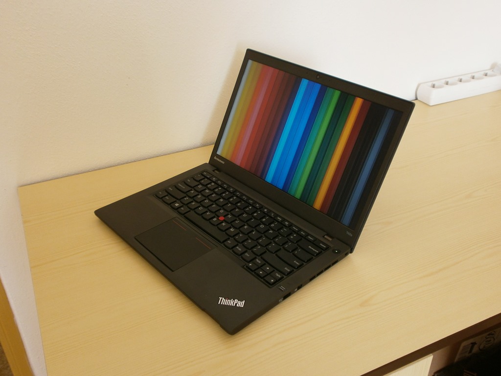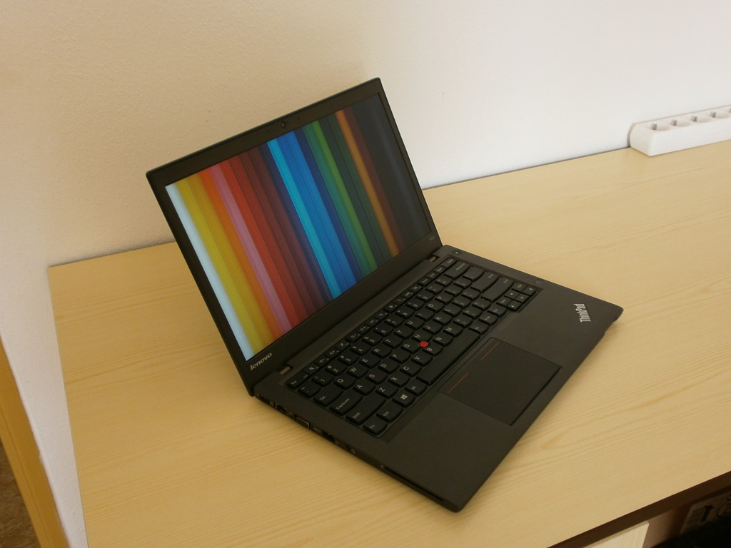 V čem ThinkPad T431s revoluci bohužel nepřináší, je displej. Ten je ve všech ohledech naprosto stejný jako v případě jakéhokoliv 14″ ThinkPadu poslední doby (světlou výjimkou budiž X1 Carbon) a plně srovnatelný s T420, T420s, T430 a T430s – jedná se o matný, 14″ panel s vyšším HD+ (1 600 x 900 bodů) rozlišením, což je na 14″ víc než dostatečná hodnota na hranici mezi zbytečně malými body a dostatkem prostoru k práci na cestách. Kontrast je nízký (udává se 400:1), svítivost standardních 250 nit, no a nechybí samozřejmě slabá sytost barev. Vertikální pozorovací úhly jsou skutečně slabé, horizontální jsou na tom lépe. Dodám ještě, že pár milimetrů u pravé a levé hrany je svítivost znatelně nižší.