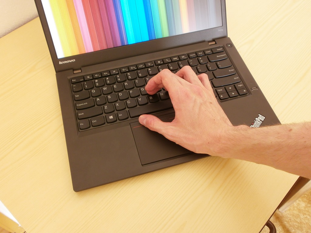 No a jak je to s pohodlím používání TrackPointu? Přišel jsem mu na chuť velmi rychle. Vzhledem k tomu, že je zde stále zachována fyzická odezva a plocha v T431s má jemnější a jednolitý stisk, pracuje se s TrackPointem naprosto intuitivně. Levé tlačítko ani to prostřední rolovací (které je hmatově zvýrazněno tradičními vroubky) nedělají žádný problém, zvykat si však musíte na to pravé, které je kvůli velké ploše poněkud více vpravo, můžete však také posunout prst pouze pod vroubky, kam zasahuje také (stejně jako na mechanických tlačítkách). Obecně je dobré se podle vroubků orientovat.