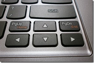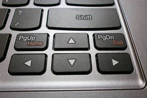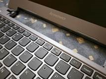 Klávesnica je 6-radová chiclet s ergonomicky tvarovanými klávesmi bez samostatného numerického bloku. Kvalitatívne je na pomerne vysokej úrovni, píše sa na nej veľmi pohodlne a príjemne. Klávesy sú dostatočne veľké a vzdialené pre zvýšenie pohodlia pri písaní. Ide vlastne o klasickú IdeaPad klávesnicu, rovnakú akú sme mali možnosť vidieť u Z500. Hĺbka kláves je nízka a zaradila by som ju k tichým klávesniciam. Za normálneho tlaku je viditeľný minimálny prehyb, najmä v strednej časti. Za vysokého tlaku je prehyb viditeľnejší, opäť najmä v strednej časti, no nie je to nič extrémne. Popisy sú prispôsobené pre Windows 8.