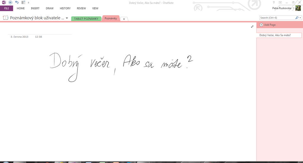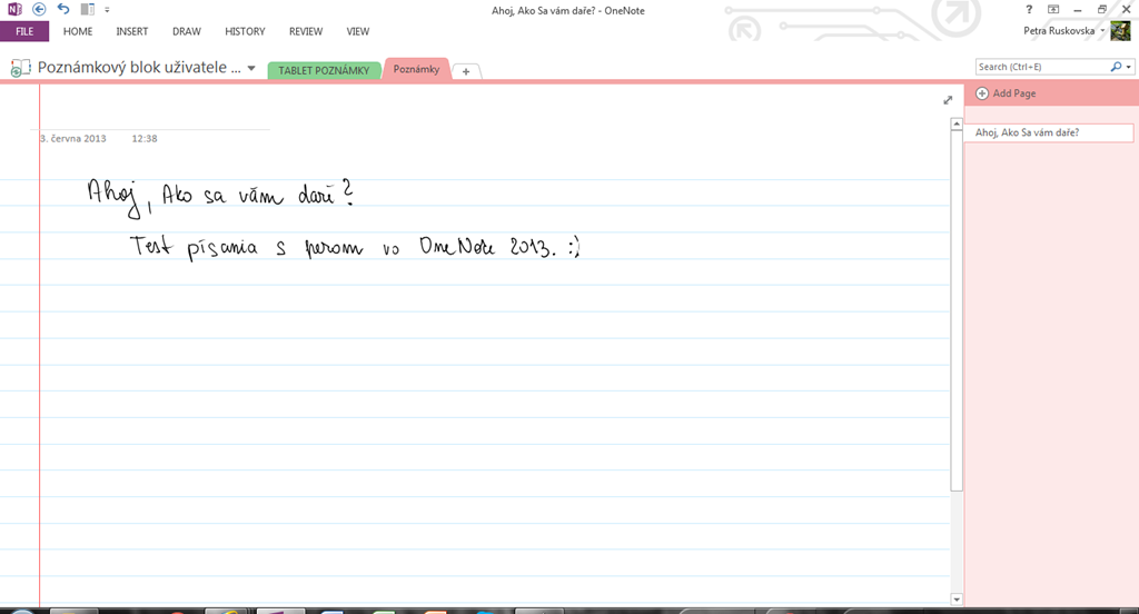 V niektorých prípadoch som ho používala v kombinácii s predinštalovaným softwarom na prevod písaného slova na elektronický text – najmä pri písaní nadpisov jednotlivých častí v konkrétnom poznámkovom bloku a takisto ich strán. Pokiaľ potrebujete program na písanie poznámok a kreslenie jednoduchých grafov je OneNote od spoločnosti Microsoft ten pravý.