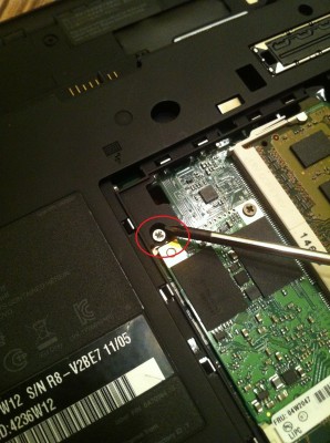 Vyšroubovat šroubek držící kryt RAM a mSATA – slouží jako první šroubek jistící klávesnici.