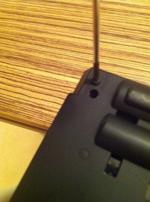 Vysunout klávesnici, a to tak, že zatlačíte na spodní část klávesnice a zároveň tlačíte směrem k LCD. (Mně se osvědčilo tlačit palcem a malíčkem a ostatními prsty sunout k LCD.)