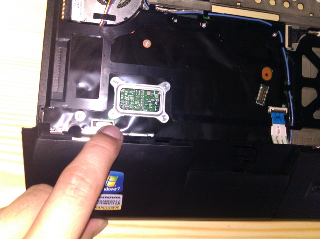 9) Je potřeba s citem vyjmout palmrest (opěrky zápěstí). Drží pouze nacvaknutý a doporučuji na něj zatlačit trochu ze strany. Žádné násilí, jen trochu trpělivosti.