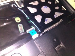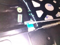 8) Tento plochý kabel odpojíme, opět si můžeme pomoci plochým šroubovákem. Ovšem velmi jemně, tento kabel se může snadno poškodit.