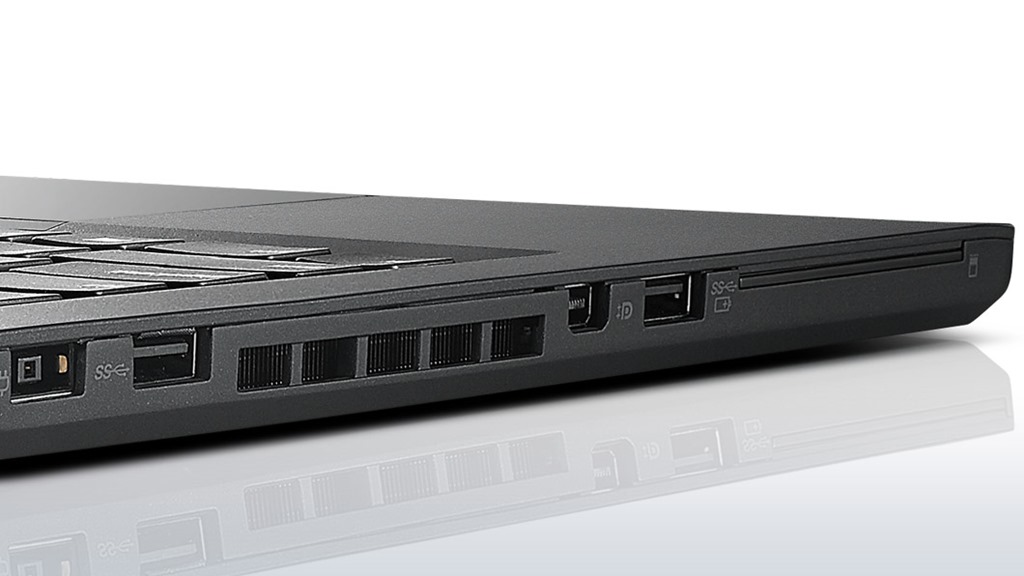 V oblasti konektorové výbavy zachovává T440s standard nastavený T431s: najdeme po bocích notebooku volitelně slot na čipové karty SmartCard, tři USB 3.0 konektory, z nichž jeden je stále napájený, miniDP, VGA i s aretací, plnohodnotný ethernet (LAN), sdružený audio konektor, čtečku paměťových karet, no a samozřejmě také nový napájecí konektor. Modely s 3G modemem využijí slot na SIM.
