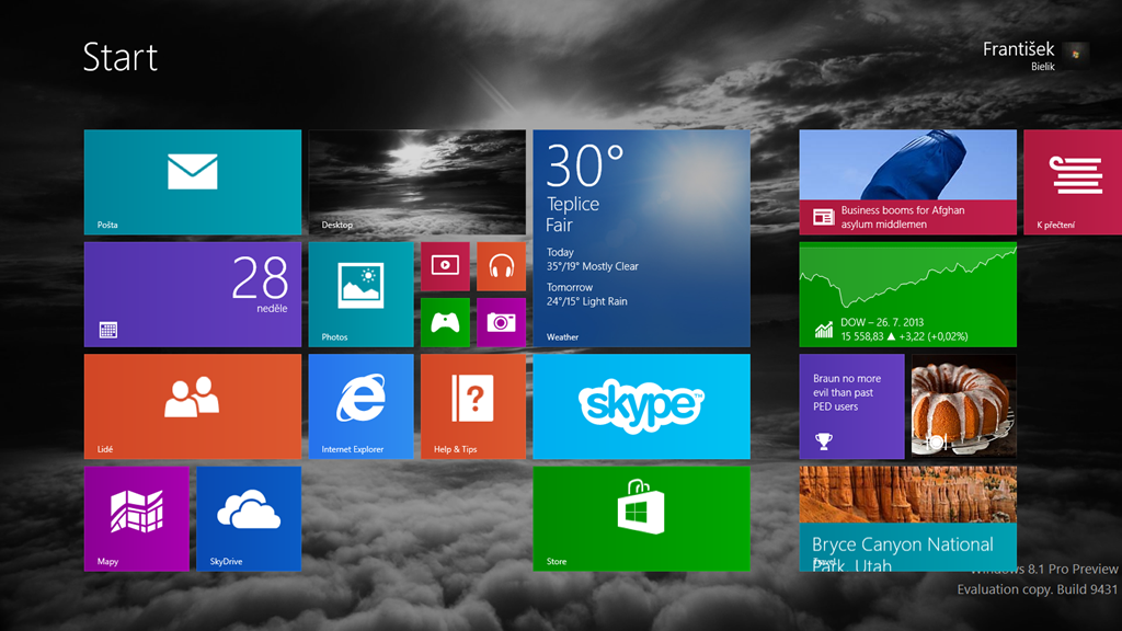 Jedny z prvních fotografií během instalace a prvních seznamovacích krůčků s Windows 8.1