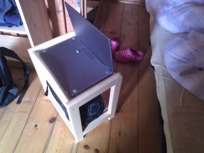 Využití polohy stojan při sledování oblíbeného seriálu na chatě s přítelkyní.