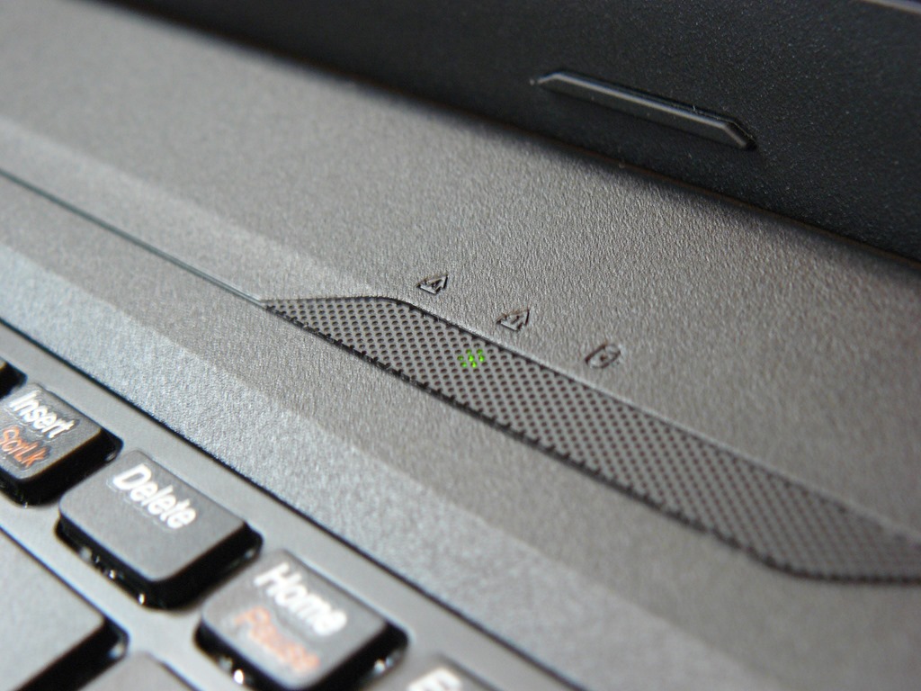 Rovněž reprodukovaný zvuk příliš nenadchne. Notebook postrádá software Dolby a i díky tomu nepodává dvojice reproduktorů ukrytých pod mřížkami nad klávesnicí zrovna přesvědčivý výkon. Postrádají jakékoli basy a jejich zvuk je velmi plechový. Maximální hlasitost by také mohla být vyšší.