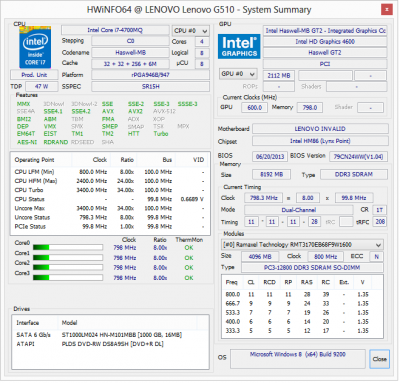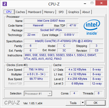 - Intel Core i7-4700MQ, 2,4 GHz (Turbo Boost až 3,4 Ghz)