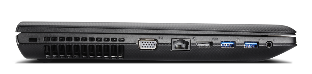 Zde najdeme postupně od kloubu displeje Kensington zámek, výdech chlazení, VGA výstup, Ethernet, HDMI, 2x USB 3.0 a kombinovaný 3,5mm jak na sluchátka s mikrofonem.
