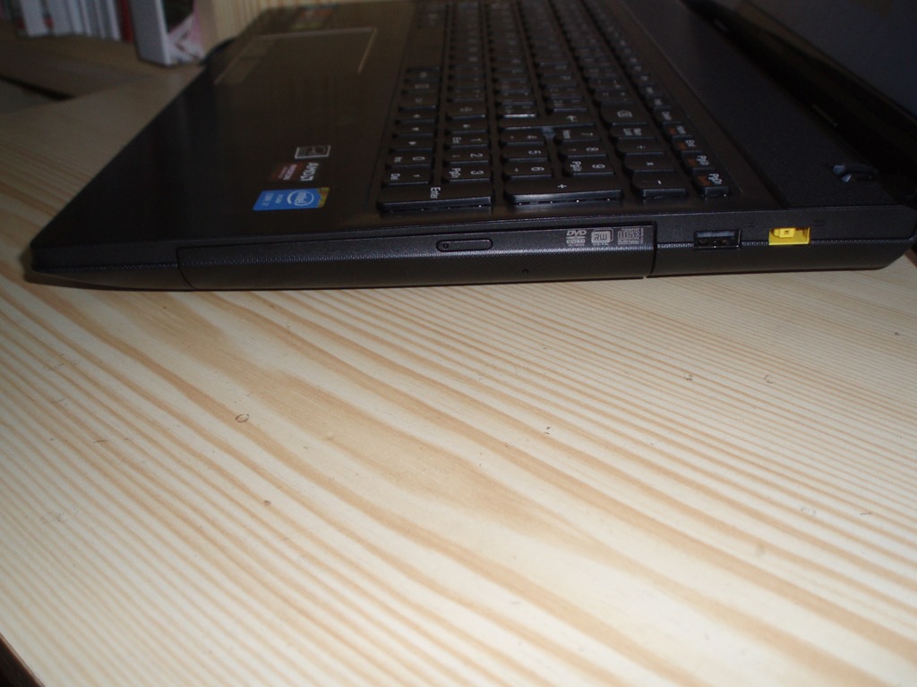 Na této straně nalezneme DVD+RW mechaniku, další USB a nový napájecí konektor.