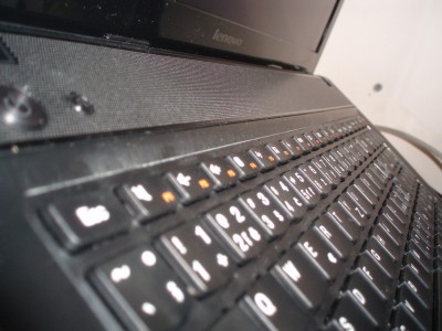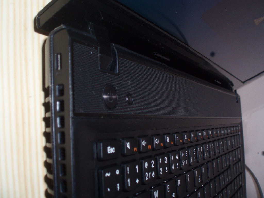 Když notebook otevřeme, na první pohled nás zaujme jediná lesklá plocha na notebooku – rámeček okolo displeje. Je to škoda, že se G510 neobešla bez lesklých částí typických otisky a odlesky. Z mého pohledu je ale největší chyba snaha trochu okořenit vzhled použitím hliníku na palmrestu (část, kde si pokládáme ruce) v kombinaci s pevným diskem pod jeho levou částí. Hliník na sebe váže teplo vyzařované pevným diskem při zátěži a pod levé zápěstí opravdu nepříjemně zatápí. Jinak palmrest ještě volně přechází v hliníkový rámeček okolo klávesnice, kde je jeho úloha pouze dekorativní a neubírá na ergonomii. Nad klávesnicí se nachází perforace, která skrývá reproduktory notebooku.