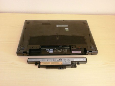 Notebook je vybavený uživatelsky vyměnitelnou, 6článkovou Li-Ion baterií s poměrně velkorysou kapacitou téměř 75 Wh a vahou 322 g.
