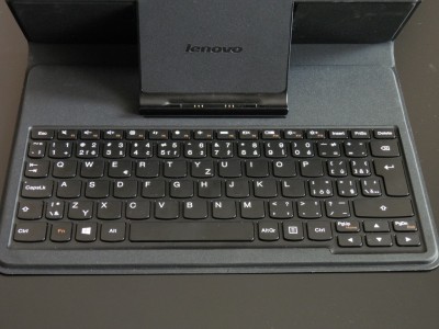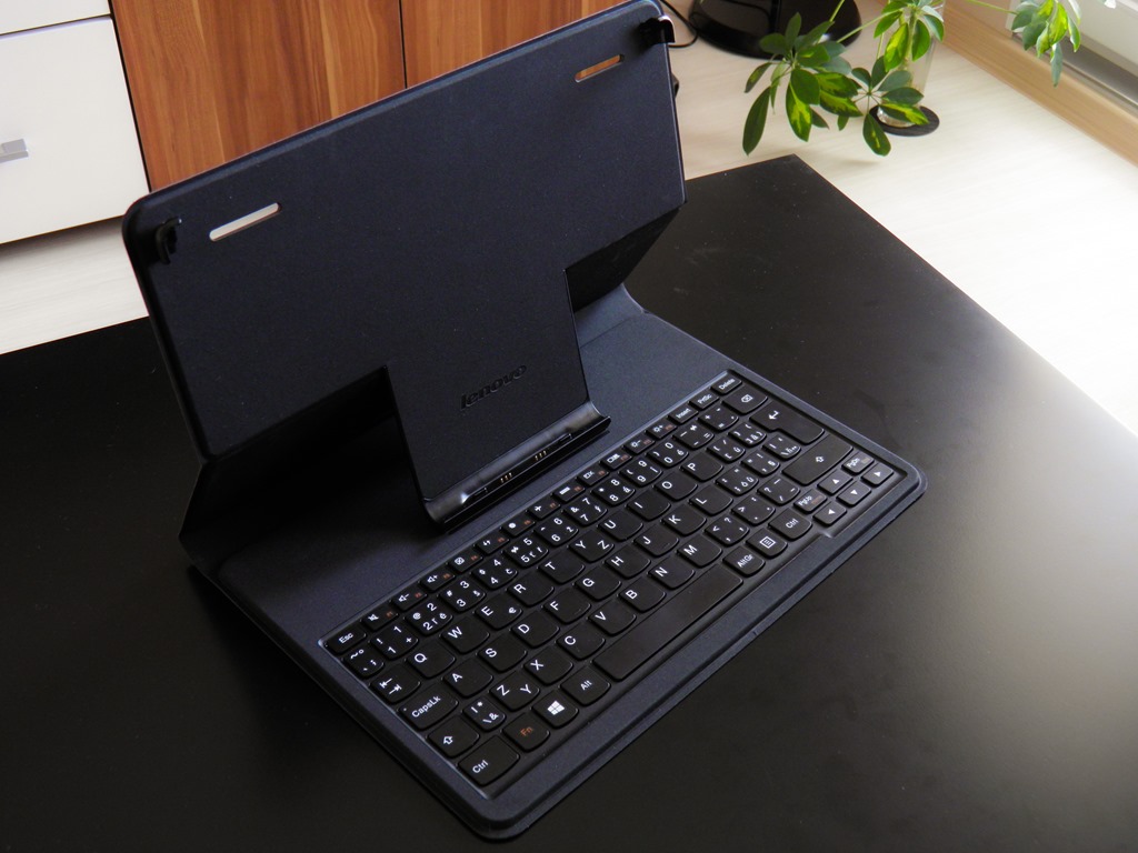 K zariadeniu získate puzdro s klávesnicou, ktoré vám umožní jednoducho prepnúť medzi režimom tablet a “notebook”. Klávesnica je klasická IdeaPad, 6-radová chiclet s ergonomicky tvarovanými klávesmi. Veľkosť a rozloženie je takmer totožné s klávesnicami IdeaPad notebookov. Píše sa na nej pomerne dobre a príjemne, niekomu by mohla vadiť nižšia hĺbka kláves. No ako prídavná klávesnica je na vysokej úrovni spracovania a rovnako aj fakt, že ju máte k zariadeniu zdarma.