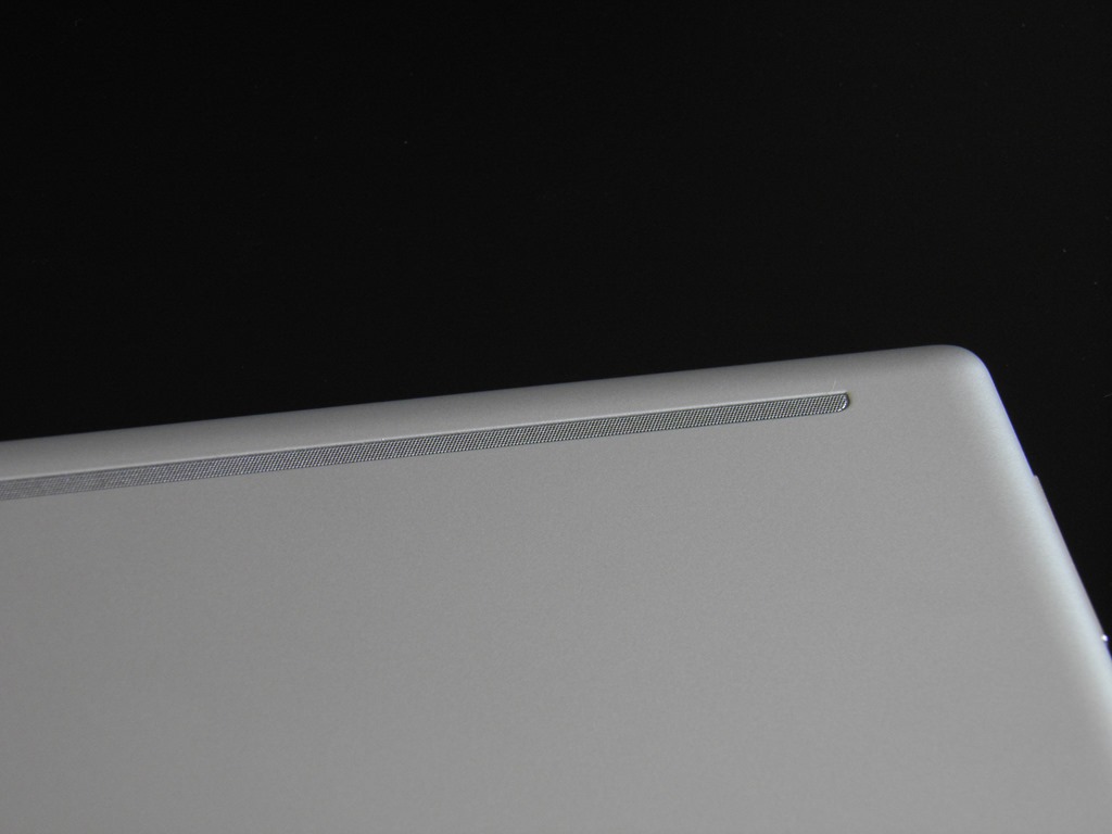 Reproduktory sú umiestnené na zadnej strane pozdĺž hornej časti. Napriek malému telu tabletu, dokáže zvuk dosiahnuť veľmi vysokú hlasitosť na maxime. Kvalita je až neuveriteľne dobrá, či už v oblasti basov alebo čistoty tónov. Zvuk nás celkovo veľmi prekvapil a potešil.