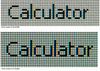 Problém není možné zachytit na snímku obrazovky, což jenom potvrzuje domněnku, že se jedná o problém (úpravu obrazu) již na úrovni hardware. Nejvíce je rozmazání patrné po vypnutí vyhlazování písma (ClearType), kdy pak písmo není ostré, ale mírně rozmazané podobně jako při sublixelovém vyhlazování.