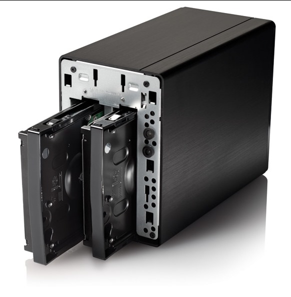První a zásadní odlišností, o které jsme mluvili, je podpora dvou disků (a také jejich možná výměna nebo rozšiřování). To však neznamená pouze potenciální možnost vyšší kapacity, ale především a hlavně podporu diskových polí RAID 0 a 1 (čili oba disky se buď tváří jako jeden velký – RAID0, nebo je obsah disků zrcadlený pro ochranu dat při selhání jednoho z disků – RAID1). RAID se však samozřejmě dá deaktivovat a disky mohou fungovat samostatně, nezávisle na sobě.