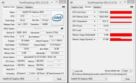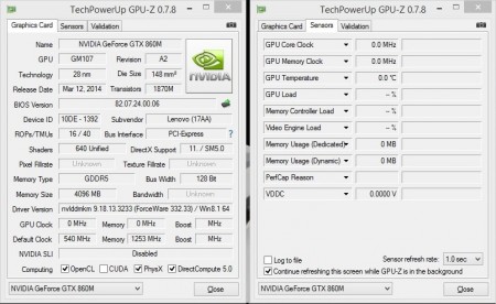 Grafická karta je kapitolou sama o sobě, jedná se totiž o žhavou novinku NVIDIA GeForce GTX 860M a zatím jsem nenarazil na jedinou hru, se kterou by měla tato karta problémy i při hraní ve Full HD. Grafická karta má vlastní paměť o kapacitě 4 GB GDDR5 připojenou přes 128bitovou sběrnici a při frekvenci 5 000 MHz dosahuje přenosová rychlost až 80 GB/s. V případě, že není nutný vysoký výkon, grafická karta se automaticky vypne a přepne na úspornější Intel HD 4600 (což u SLI konfigurace starší generace Y500 nebo Y510 nelze).
