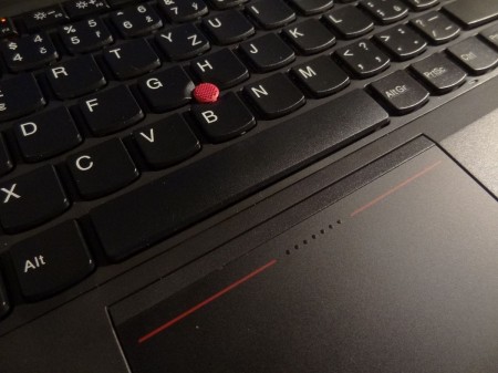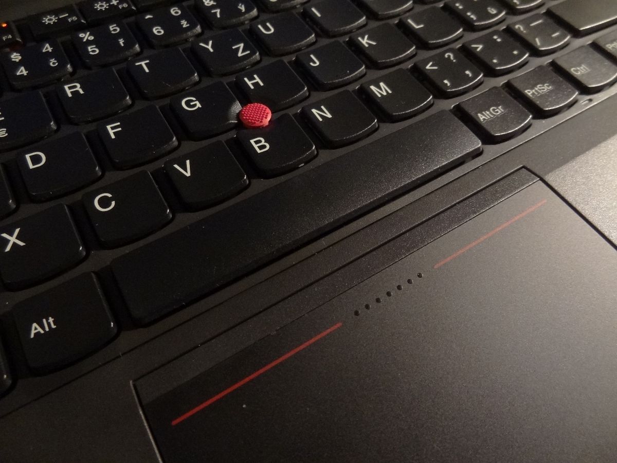 TrackPoint sám o sobě funguje naprosto výtečně, zde se od devadesátých let nezměnilo nic. Bohužel, v nové generaci ThinkPadů přišel o svá vlastní mechanická tlačítka. Jejich náhrada na trackpadu není tak pohodlná, nejvíce mi vadí nutnost vytáčet ruku při stisku pravého tlačítka. Za mě jednoznačně velká chyba, Lenovo nicméně v novém Helixu tlačítka TrackPointu vrátilo a věřím, že v příští generaci již bude tento přešlap napraven. Setkal jsem se už ale i s lidmi, kteří s novými tlačítky žádný problém neměli.