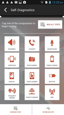- Diagnostika funčnosti komponent zariadenia, ako napr. dotyková obrazovka, predný a zadný fotoaparát, mikrofón, Wi-Fi a pod.