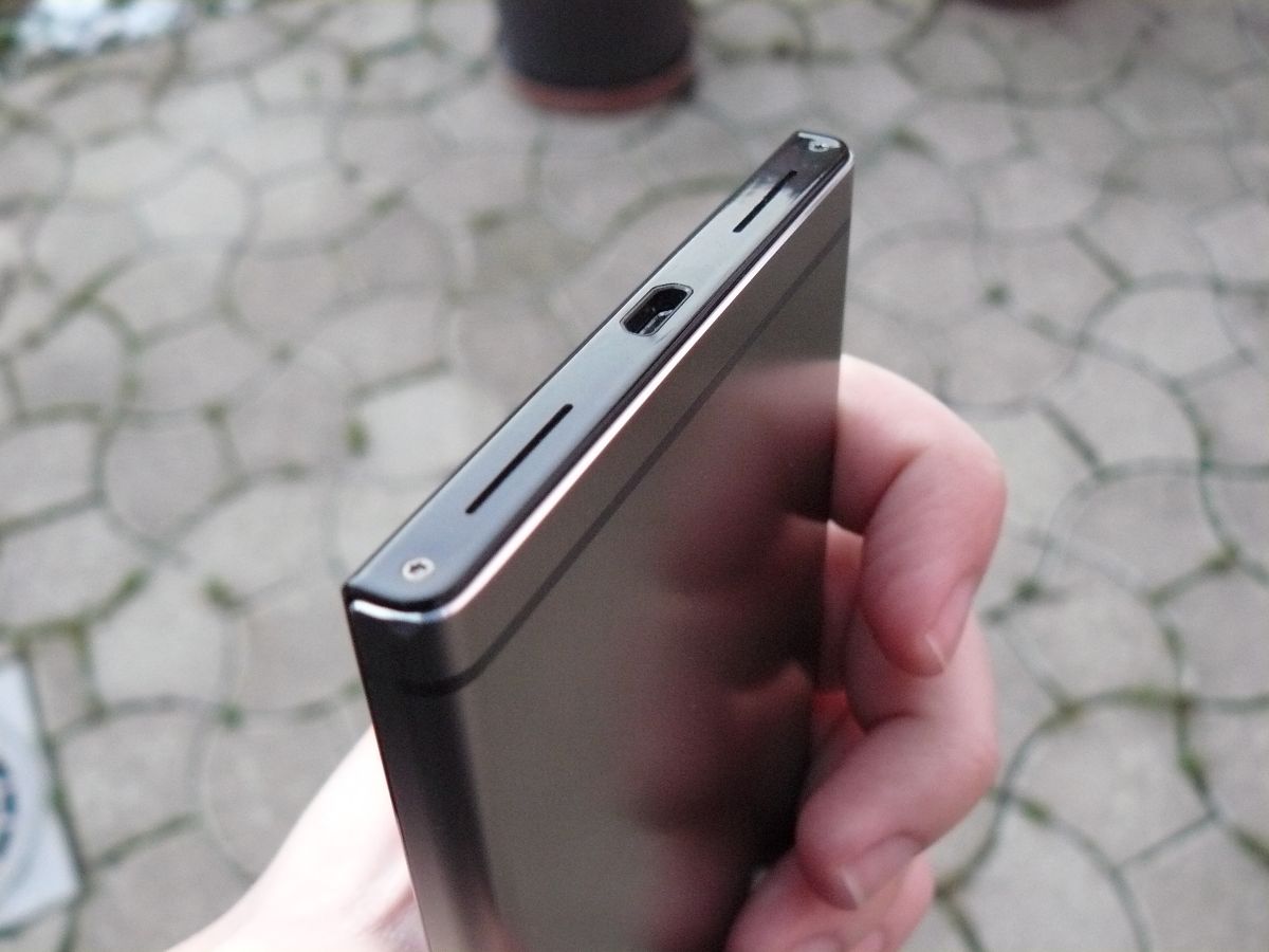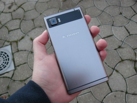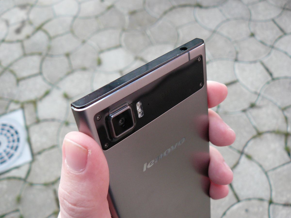 Zadní stranu kompletně překrývá kovový kryt z broušeného hliníku. Jedinými rušivými elementy jsou v tomto případě modul fotoaparátu s jeho okolím a plastové linky kvůli lepšímu příjmu signálu. Samotný fotoaparát výrazně vystupuje nad povrch zad. Nad krycí sklo čočky fotoaparátu pak mírně vystupuje stříbrný rámeček, který by jej částečně mohl před škrábanci ochránit, nicméně ani ten obavy o jeho poškrábání při položení telefonu na záda zdaleka neeliminuje. Vedle čočky se pak nalézá dvojice přisvětlovacích diod. Okolí fotoaparátu je tvořeno lesklým, černým plastem, na kterém se Vibe Z2 chlubí parametry fotoaparátu. Bohužel tento lesklý plast bude při běžném používání neustále plný otisků. Efektně vypadají viditelné hlavičky šroubů, kterých po těle telefonu nalezneme hned několik. Na levém boku přístroje nalezneme pouze šuplík pro dvojici micro SIM karet. Na pravém boku na nás zase čeká zapínací tlačítko a kolébka hlasitosti. Ty nejsou na svých pozicích úplně pevně přidělané a díky tomu rachotí. Při běžném používání si toho pravděpodobně velmi brzy přestanete všímat, i tak je však této drobnosti škoda. Rachotící tlačítka totiž představují jedinou kaňku na jinak příkladně pevné a precizní konstrukci Vibe Z2. Sluchátkový jack se nalézá na vrchní straně přístroje, microUSB nabíjecí konektor zase naspodu, spolu s telefonním mikrofonem a hlasitým reproduktorem.